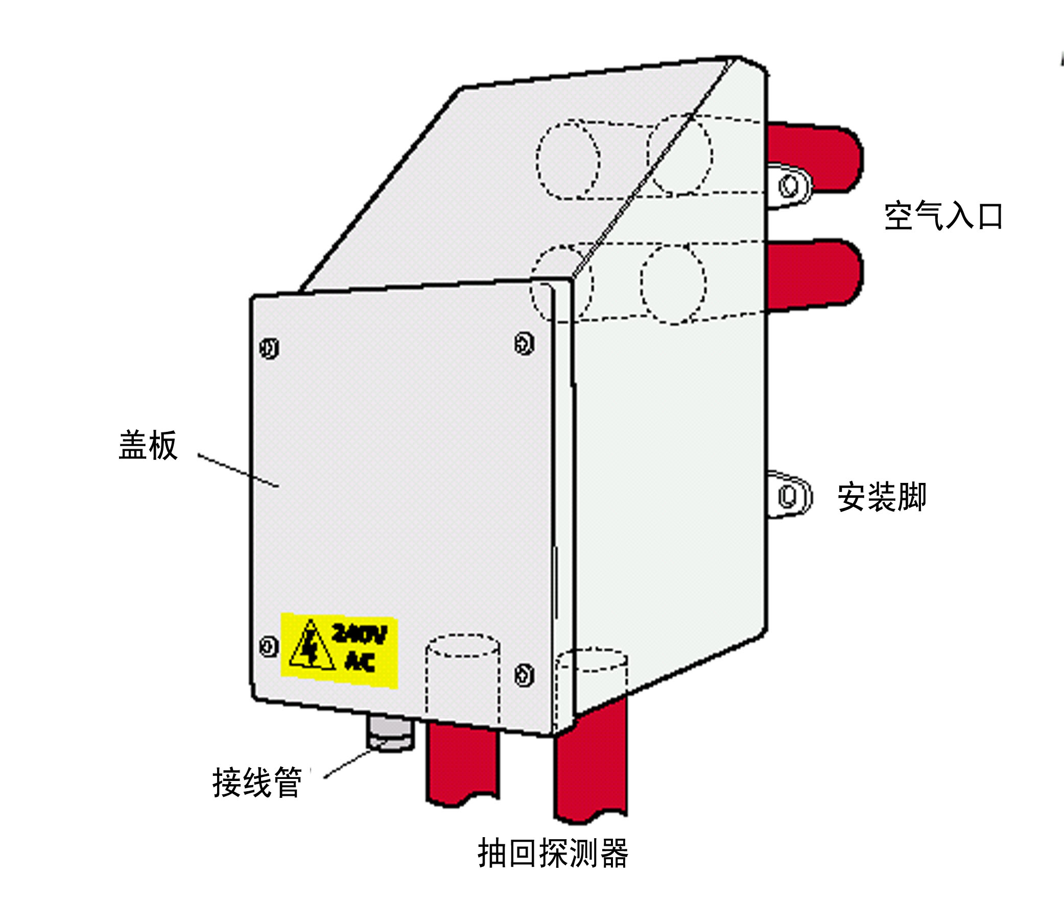 如果沒有維修空間,加熱器和GST空氣采樣式感煙火災探測報警器都可以安裝在建筑物墻上的避免氣候影響的防護箱內。