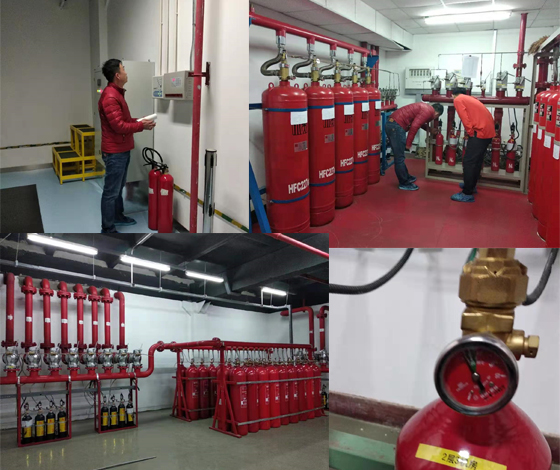 3)對高壓二氧化碳、三氟甲烷儲存容器逐個進行稱重檢查,滅火劑凈重不得小于設計儲存量的90%